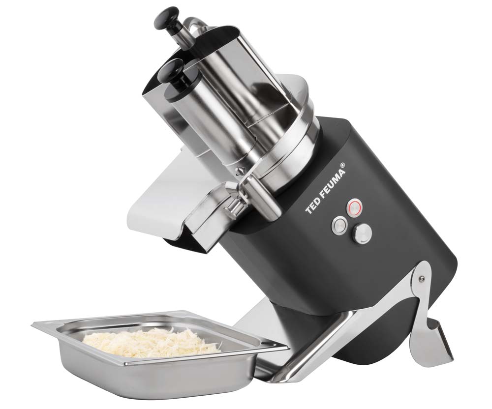 Dieser Gemüseschneider TED FEUMA® kann durch die kompakte Bauweise aus Edelstahl überall in der Küche platziert werden. Diese Küchenmaschine ist mit einem Schneidaufsatz für Obst und Gemüse ausgestattet, der über eine sehr große Füllöffnung verfügt. Die einfache, komfortable Bedienung des Geräts ermöglicht das optimale Schneiden, Reiben, Schnitzeln, Streifenschneiden, Würfeln und mit dem Gourmetaufsatz auch den perfekten Waffelschnitt (gekreuzter Wellenschnitt) und Schnitt von sehr kleinen Würfeln.